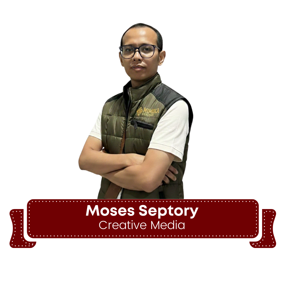 Seorang Profesional Media yang berpengalaman di Industri Media di Jakarta. Saat ini Moses bergabung di Mimika Center untuk kelancaran produksi Media, sehingga Mimika Center memiliki kualitas Media yang berkualitas. Dengan pengalaman yang cukup lama di dunia Media, kini Moses bertanggung jawab atas kualitas Media yang ada di Mimika Center.